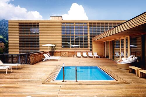 Hotel Post Bezau Susanne Kaufmann Spa is a top luxury spa hotel featuring an outdoor pool a 24-hour health club outdoor tennis courts and a bar. Hotel Post Und Susanne Kaufmann Spa is a 5-minute walk from Bezau Brugg bus station. The Post Bezau doors were first opened by Kaufmanns great-great-grandfather in 1850 and although there is chalet-style cladding in the restaurant it is far from a stuffy mountain hotel.